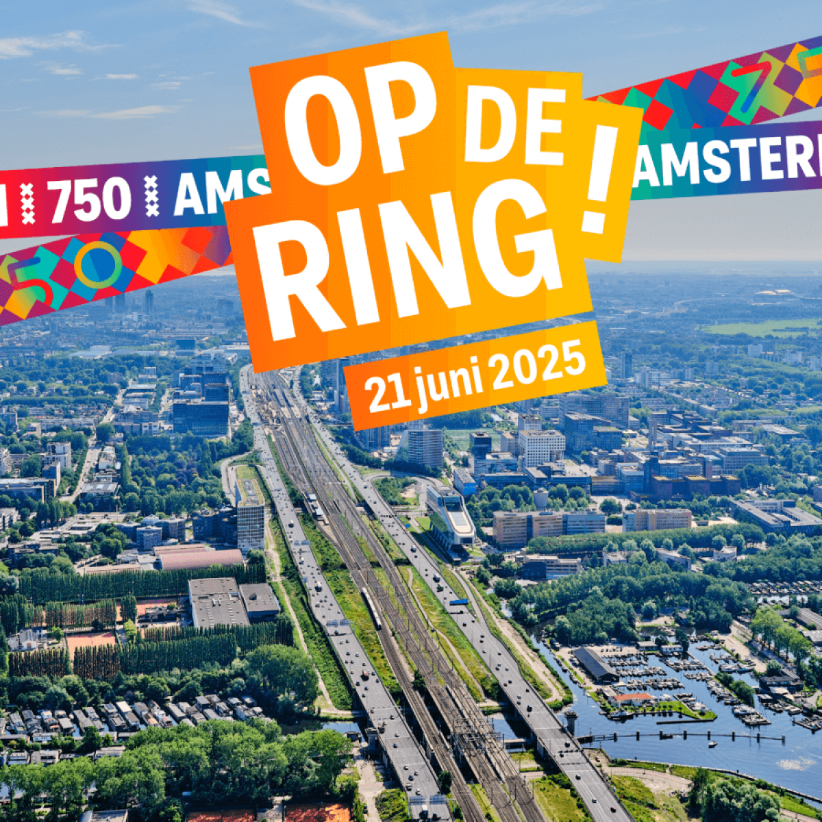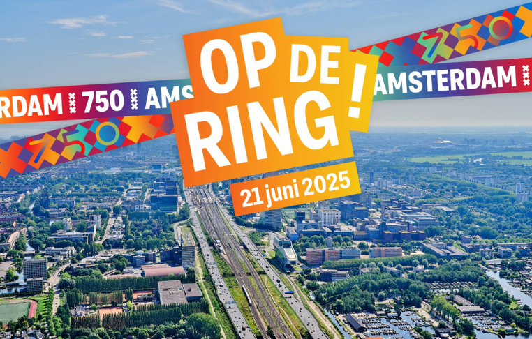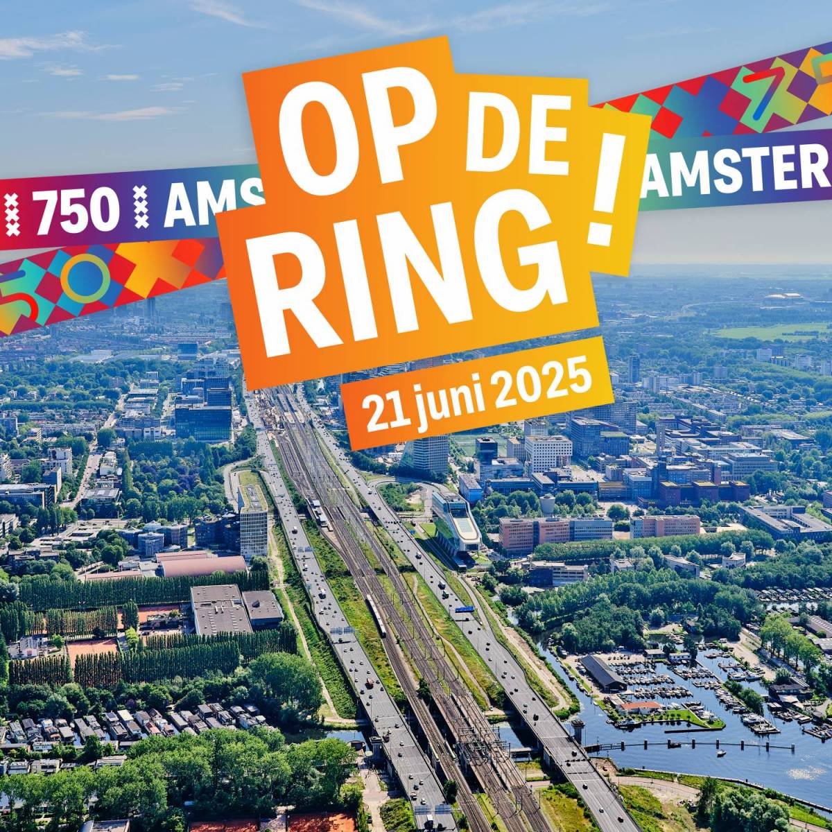 Op 21 juni - de langste dag van het jaar - vieren we de 750e verjaardag van Amsterdam op 15 kilometer autovrije Ring A10. Het wordt een écht Amsterdams feestje, met muziek, sport, dans, kunst, eten en drinken en nog veel meer. De A10, de plek waar elke dag duizenden auto’s overheen razen, die dagelijks doorkruist wordt door duizenden Amsterdammers. Op hun weg naar werk, naar school, naar waar dan ook en weer terug naar huis. Voor één dag is het de plek waar Amsterdammers samen komen om 750 jaar Amsterdam te vieren. Om plezier te maken, met oude vrienden en nieuwe bekenden, om bijzondere dingen te beleven en nieuwe herinneringen te maken. Voor één dag is het geen ‘binnen de ring’, geen ‘buiten de ring’, maar ‘Op de Ring’.